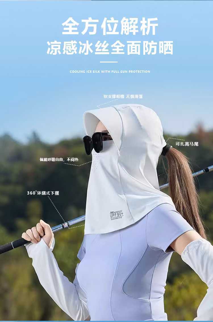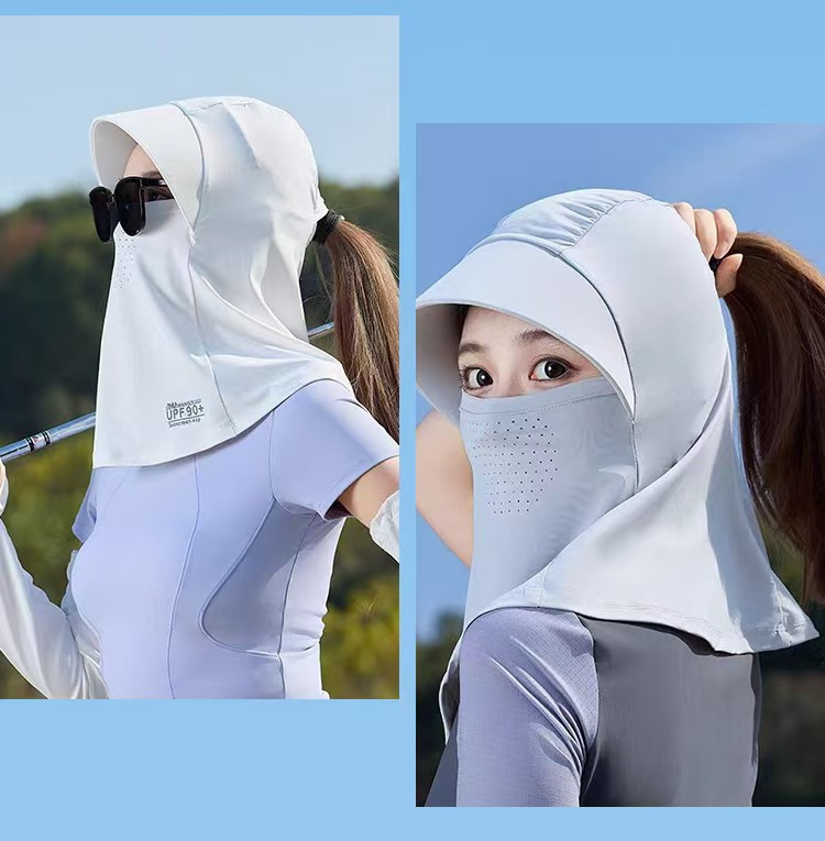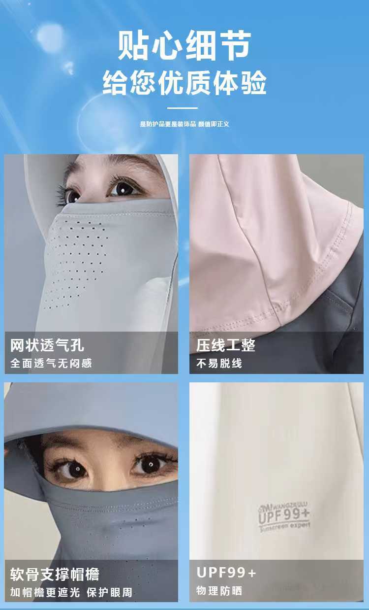 护颈一体防晒面罩帽夏季女全脸防紫外线户外骑行冰丝脸基尼遮阳帽