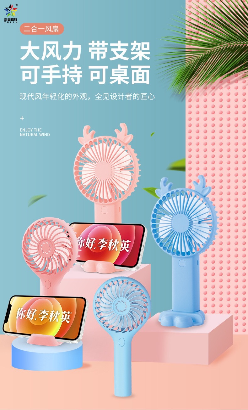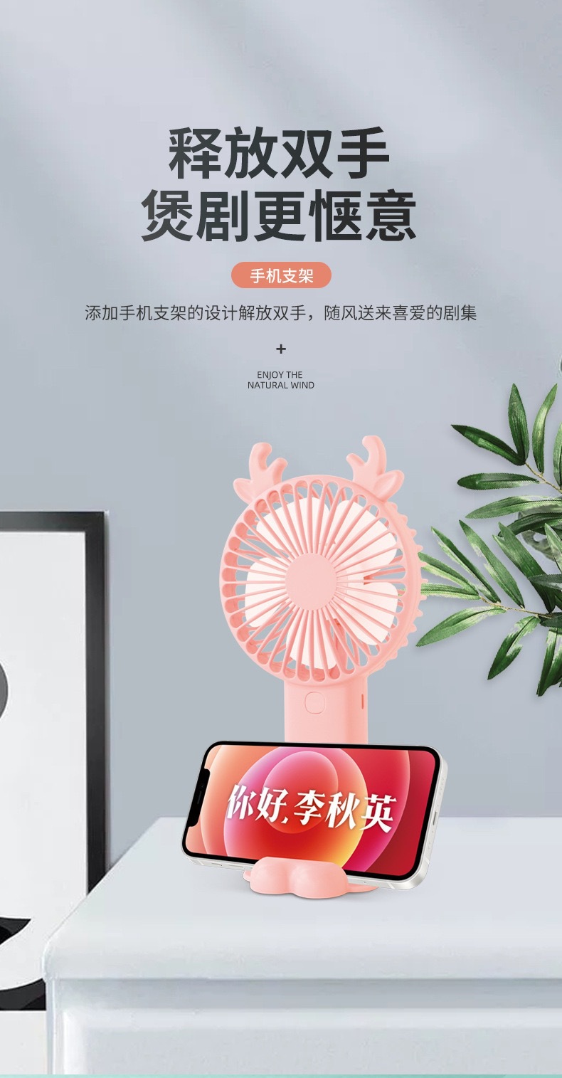 卡通手持充电USB迷你手机支架风扇学生口袋便携式户外礼品赠品