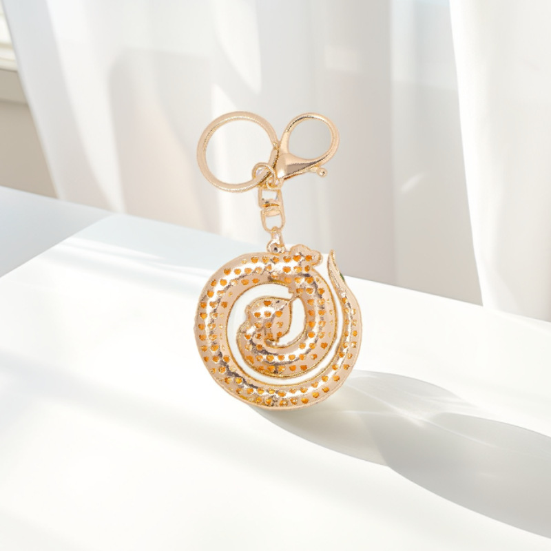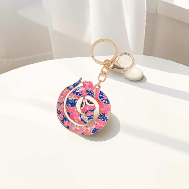中国风招财滴油彩花蛇汽车钥匙扣合金镶钻动物钥匙圈汽车包包挂件