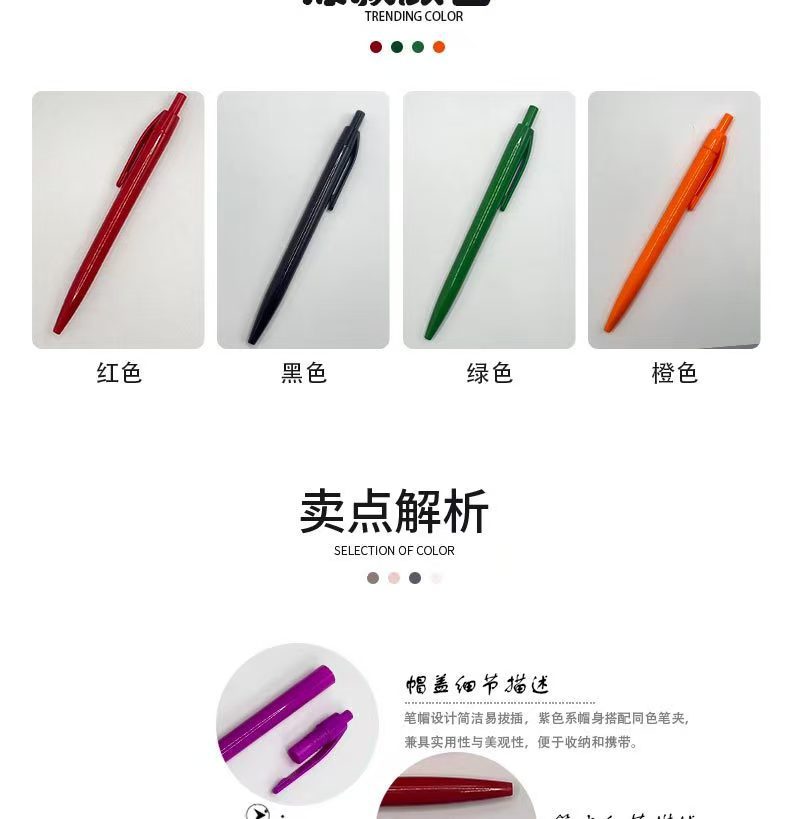 高颜值多色广告笔圆珠笔按动简易笔塑料原子笔办公酒店笔塑料笔
