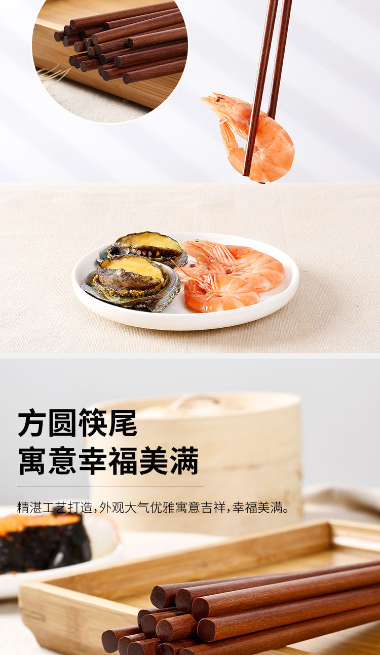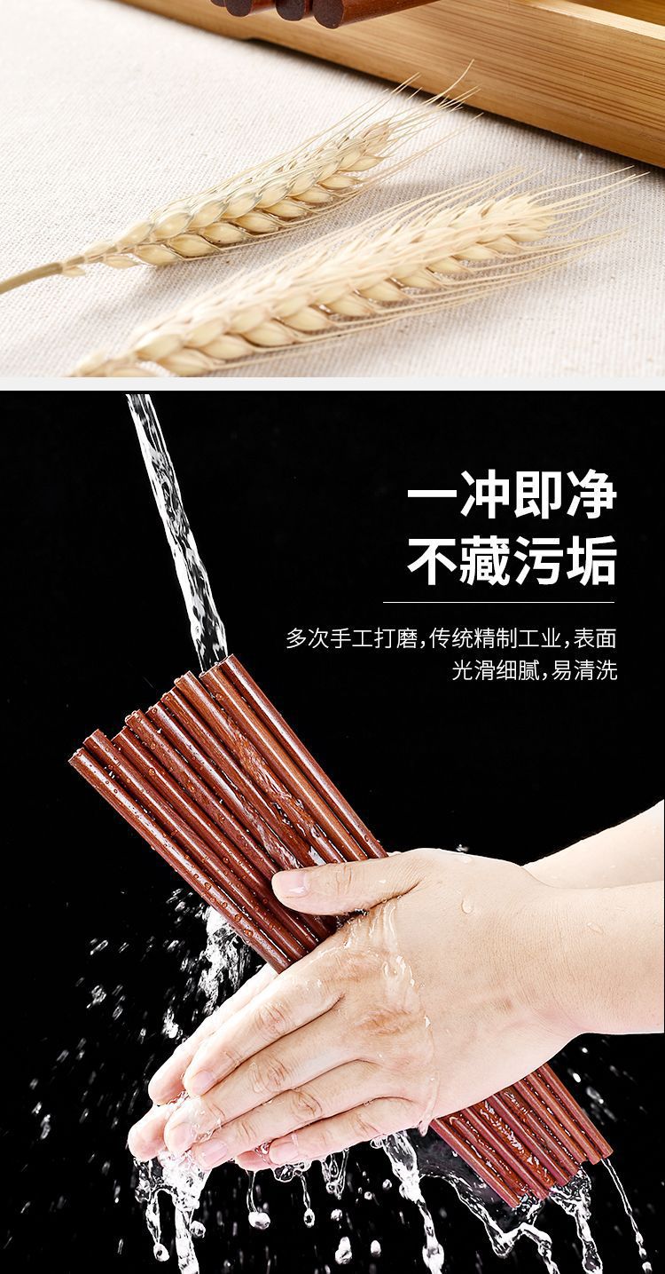 天然原木无漆无蜡实木筷防霉防滑原木厨房耐高温红檀木木筷子