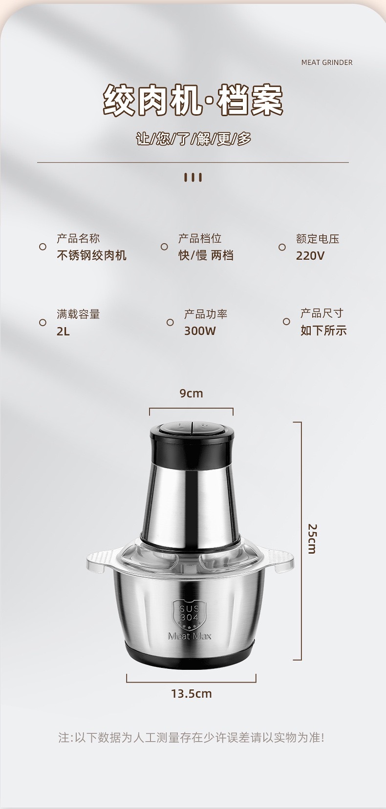 厂家直发大容量电动不锈钢绞肉机家用辅食机料理机粉碎机搅拌机,批发价,价格:22.5,厂家直销,厂家直发大容量电动不锈钢绞肉机家用辅食机料理机粉碎机搅拌机,免费拿样。