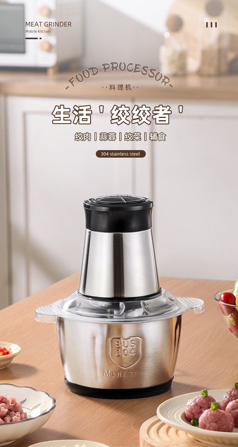 厂家直发大容量电动不锈钢绞肉机家用辅食机料理机粉碎机搅拌机
