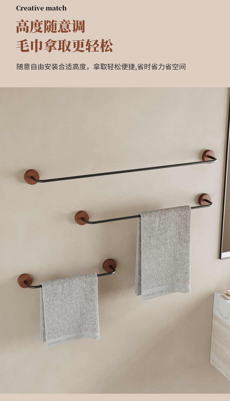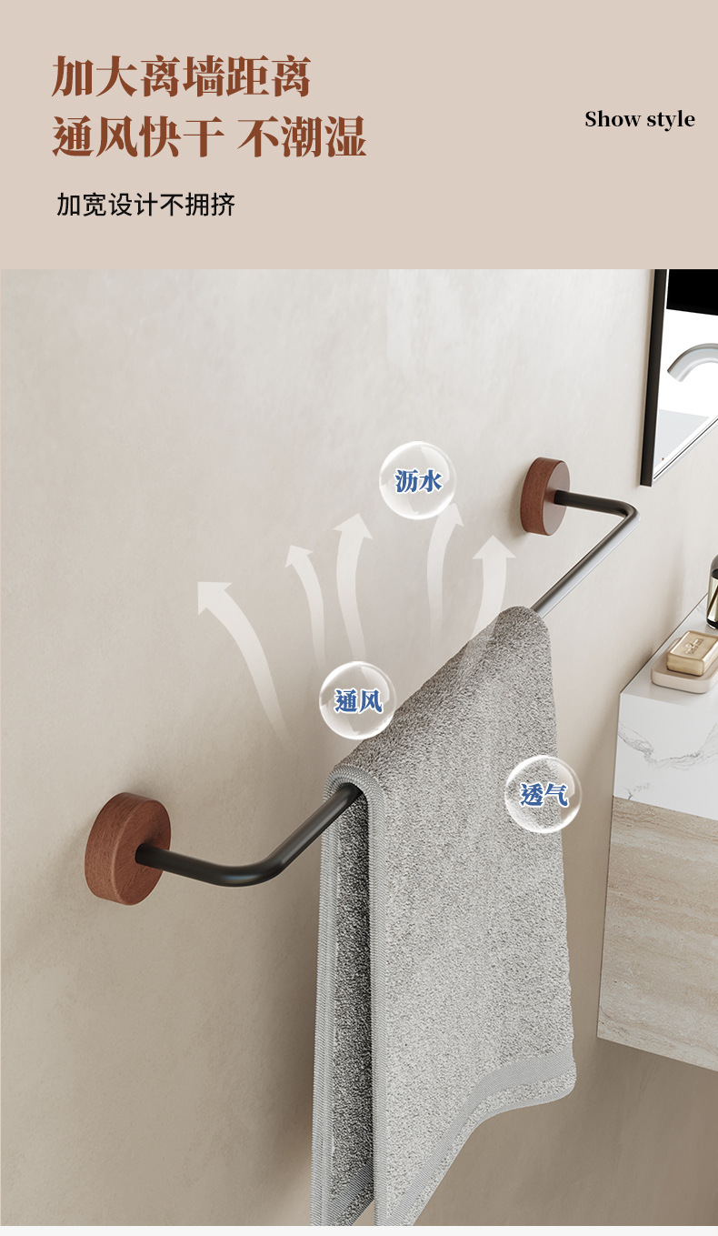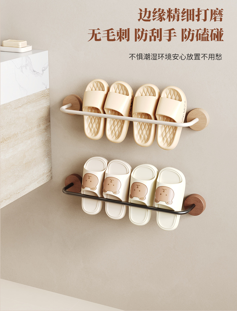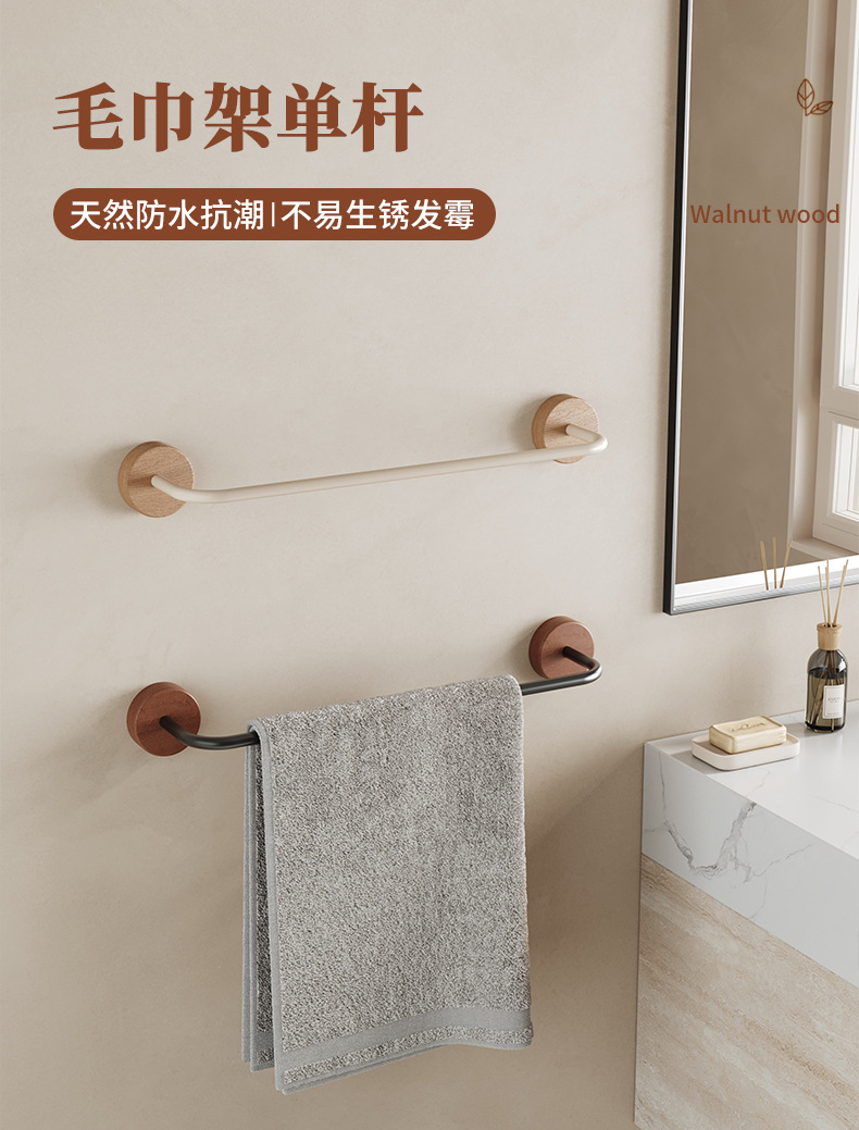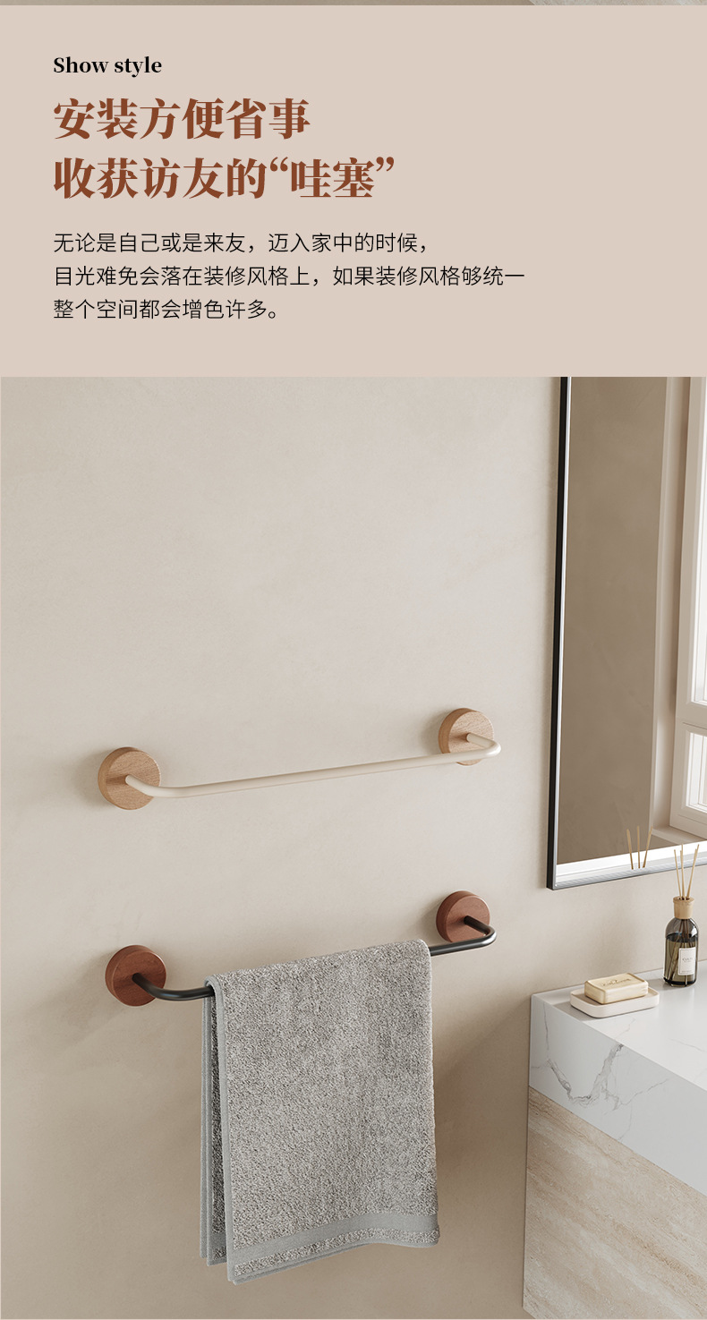 优质原木卫生间毛巾拖鞋架免打孔吸盘强力粘浴室毛巾浴巾挂杆单杆