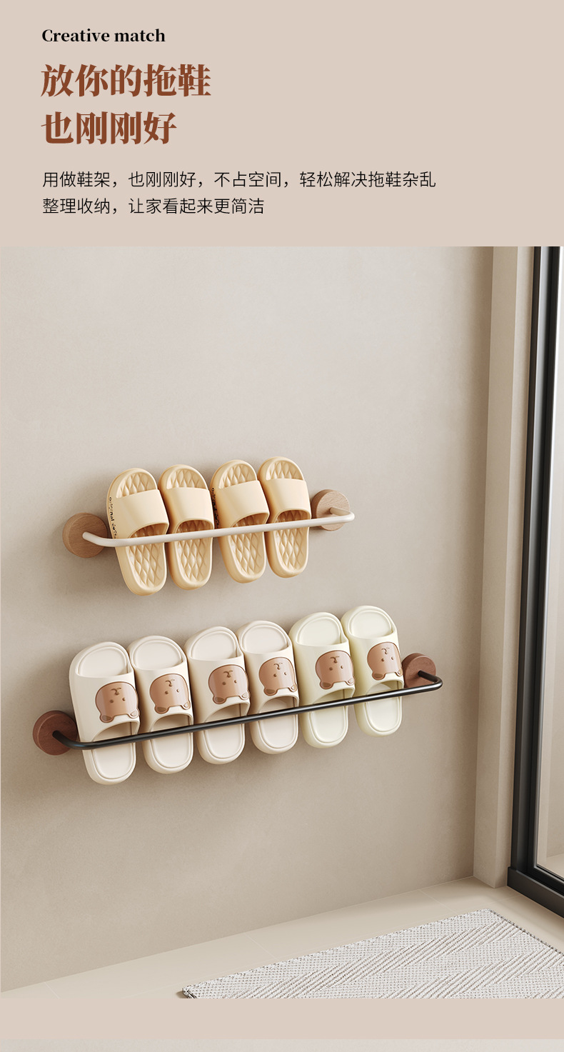 优质原木毛巾拖鞋架 免打孔毛巾架 吸盘强力粘毛巾挂杆 免钉胶