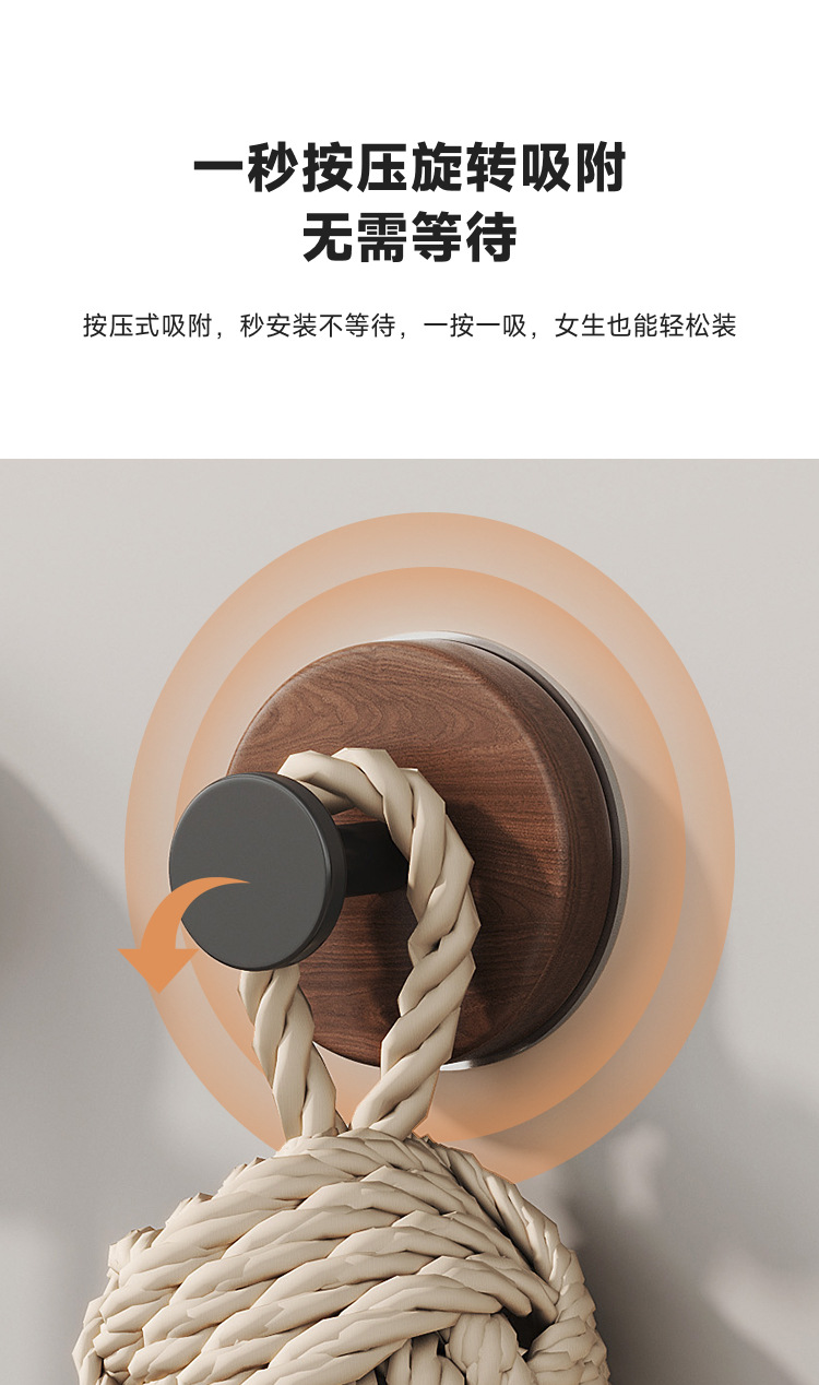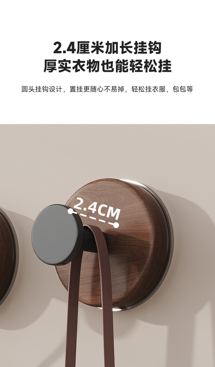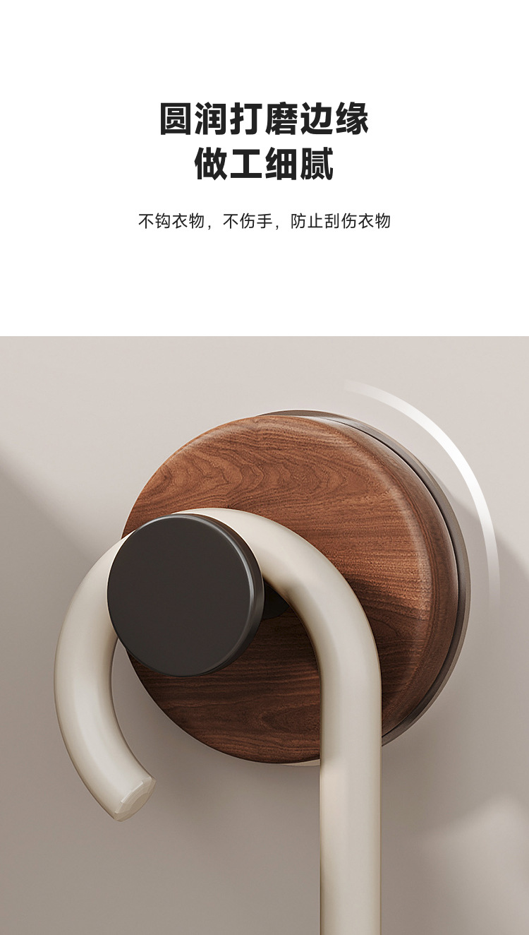 毛巾架挂钩排钩单钩旋转式安装一键安装免打孔免钉胶单杆强力吸附吸盘胡桃木实木材质防水防锈安装方便精美高档时尚简洁