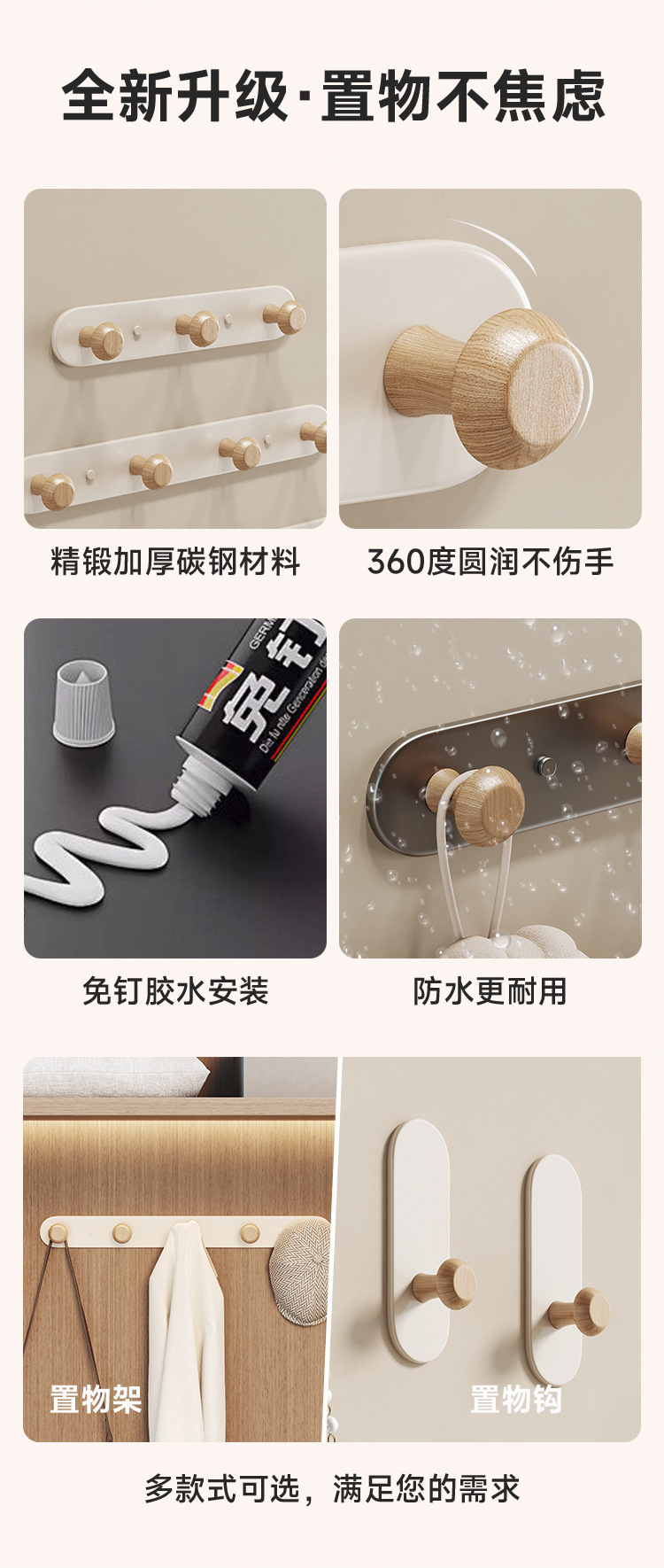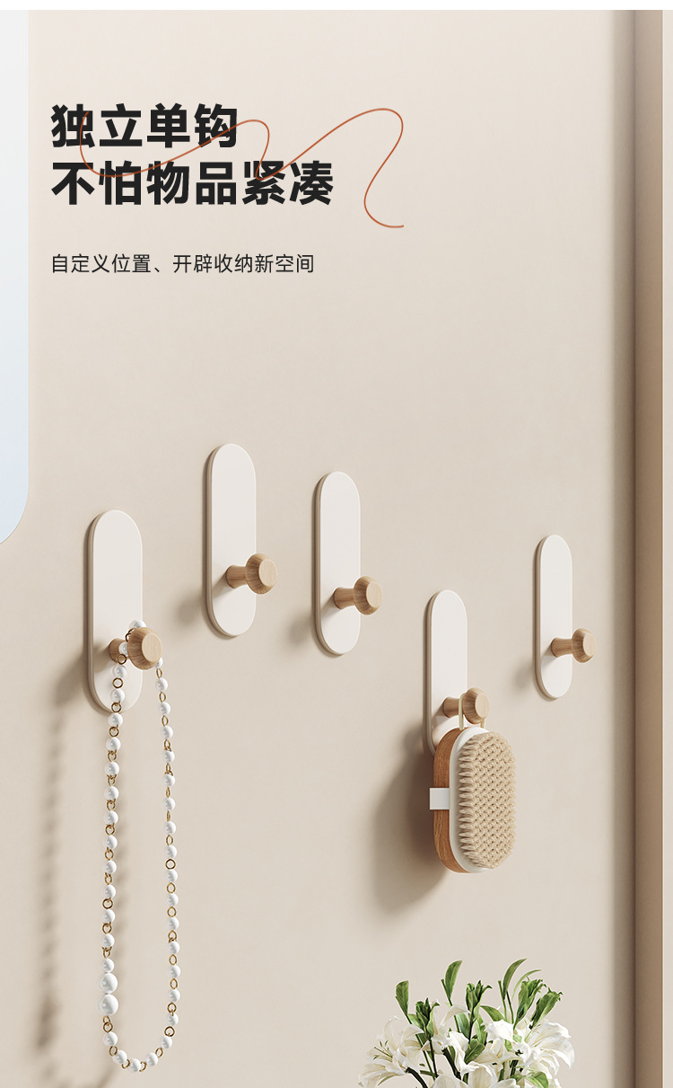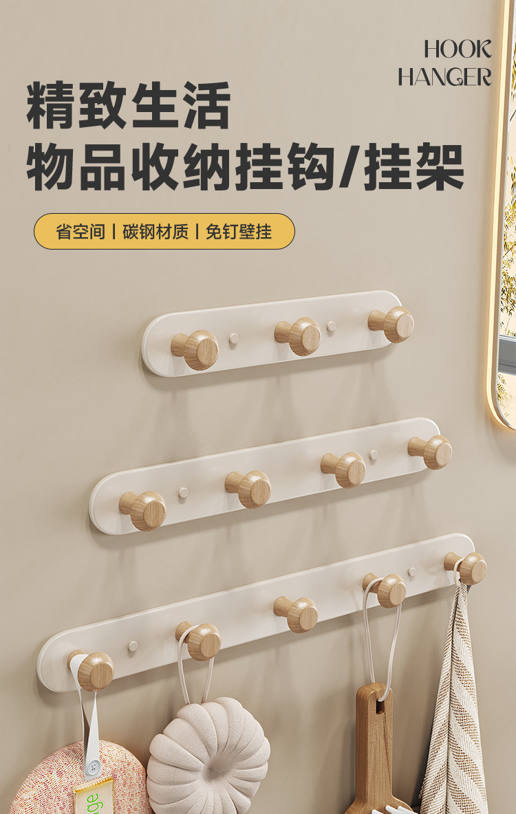 优质原木排钩 免打孔排钩 吸盘强力挂钩 实木高档挂钩 强承重