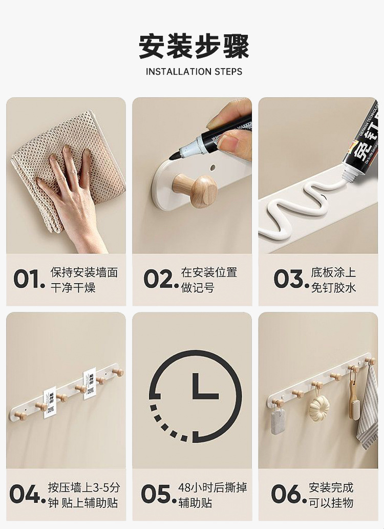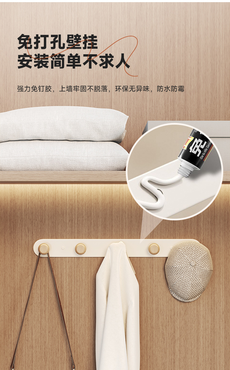 推荐理由:免打孔式安装,使用免钉胶,告别传统繁琐钻孔过程,极大程度保护墙面完整性。天然防水抗潮、不易生锈发霉特性,由源头工厂生产,具备价格优势。支持一件代发、免费贴标,还提供跨境外贸以及 OEM 贴牌定制服务。