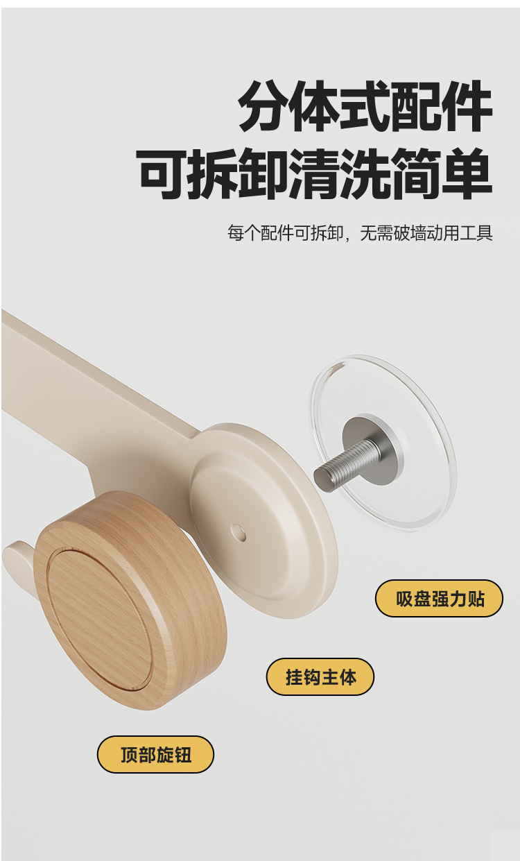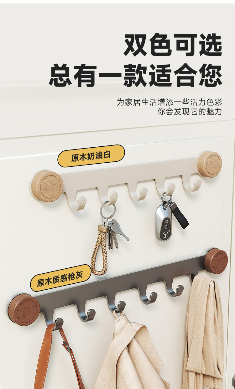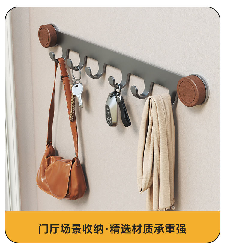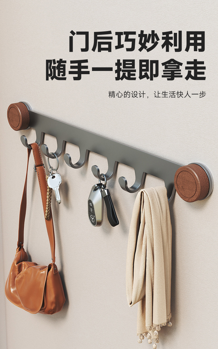 原木吸盘门后挂钩免打孔粘胶承重浴室排钩置物架入户门收纳挂衣架
