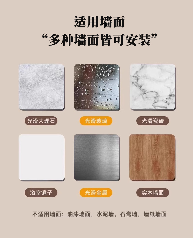推荐理由:免打孔式安装,使用免钉胶,告别传统繁琐钻孔过程,极大程度保护墙面完整性。天然防水抗潮、不易生锈发霉特性,由源头工厂生产,具备价格优势。支持一件代发、免费贴标,还提供跨境外贸以及 OEM 贴牌定制服务。