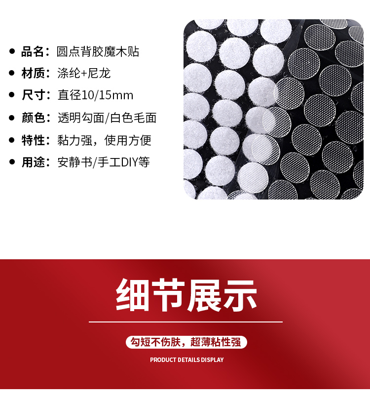 圆形魔术贴强力双面背胶幼儿园手宝宝安静书自粘子母贴粘毛面