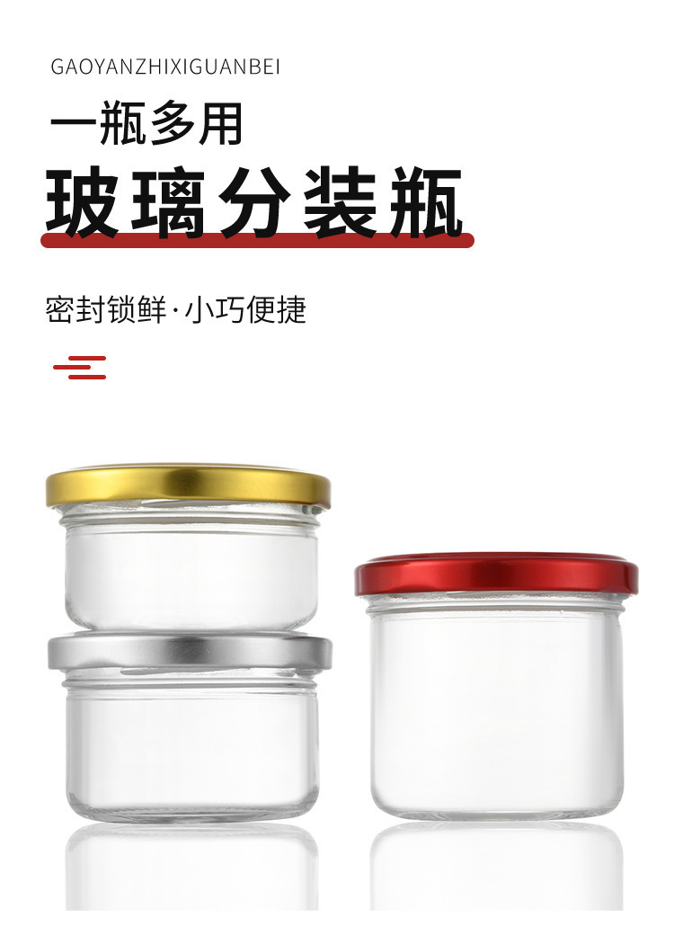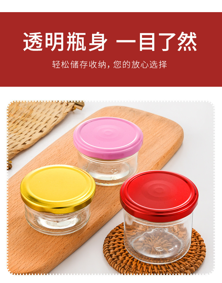 厨房燕窝储物花胶冻鱼子酱果酱分装密封宽口带盖小号玻璃瓶玻璃罐,批发价,价格:0.8,厂家直销,厨房燕窝储物花胶冻鱼子酱果酱分装密封宽口带盖小号玻璃瓶玻璃罐,免费拿样。