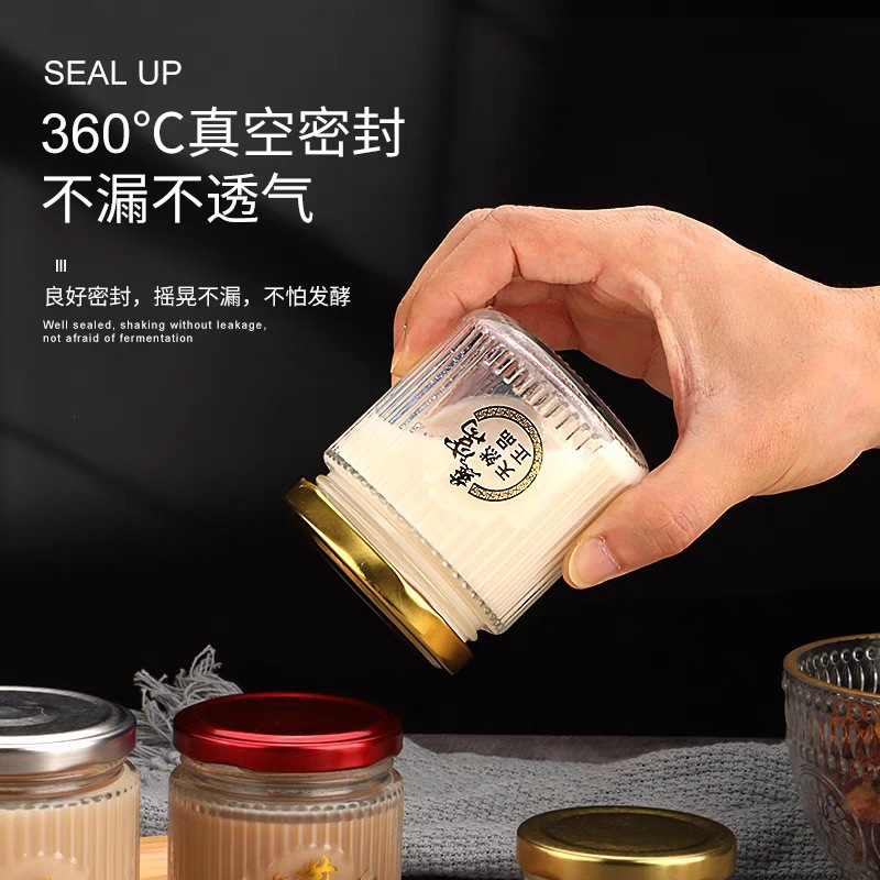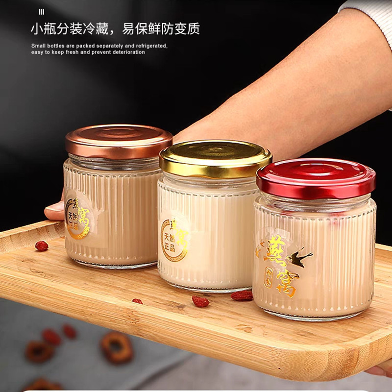 耐高温可蒸煮燕窝分装瓶150ml大口竖纹玻璃燕窝瓶花胶蜂蜜密封瓶