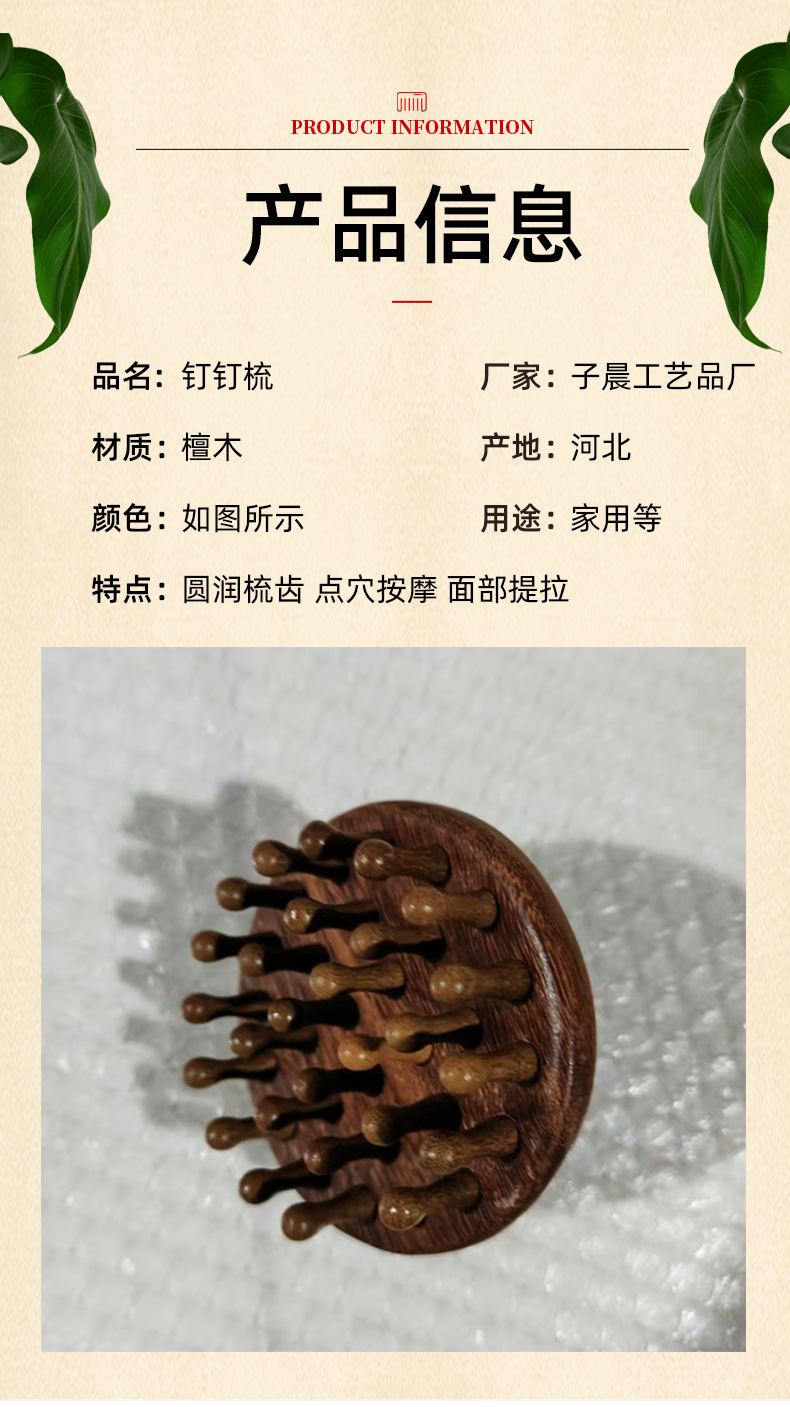 钉钉梳圆盘按摩梳批发木质洗头刷按摩器粗齿木梳头部经络梳