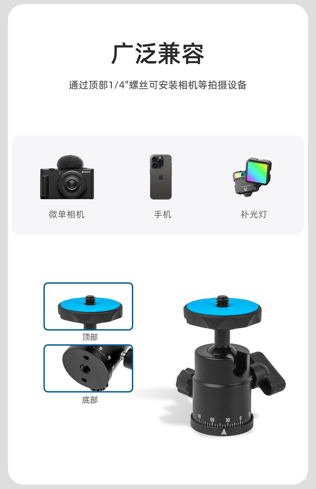 万向调节金属云台三脚架配件手机相机转向台铝合金360度通用云台,批发价,价格:19.9,厂家直销,万向调节金属云台三脚架配件手机相机转向台铝合金360度通用云台,免费拿样。