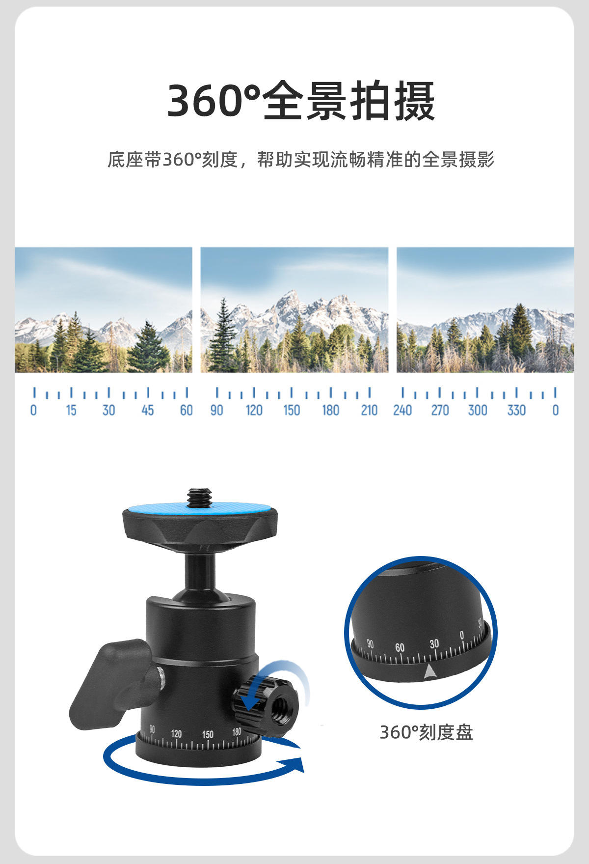 万向调节金属云台三脚架配件手机相机转向台铝合金360度通用云台