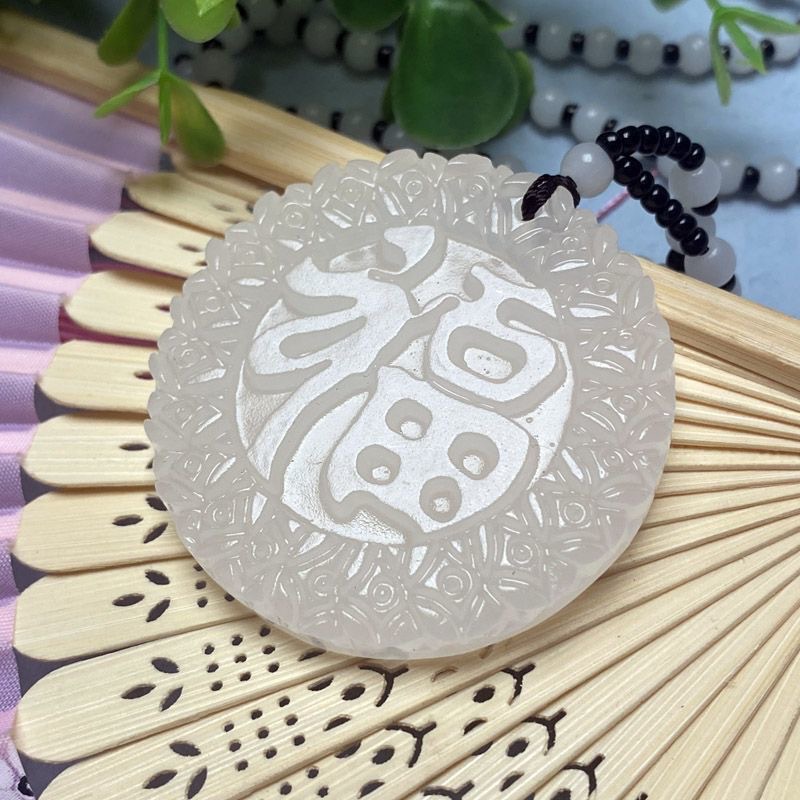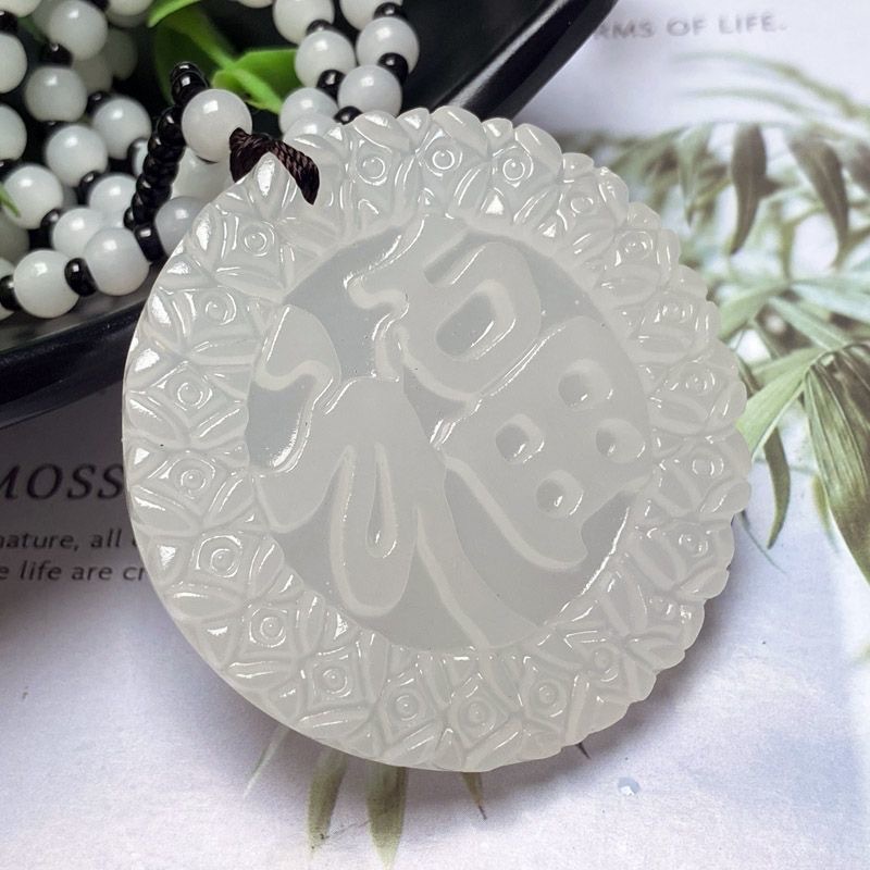 阿富汗仿白玉福牌吊坠男女生毛衣链玉佩节日礼品送妈妈送女友项链