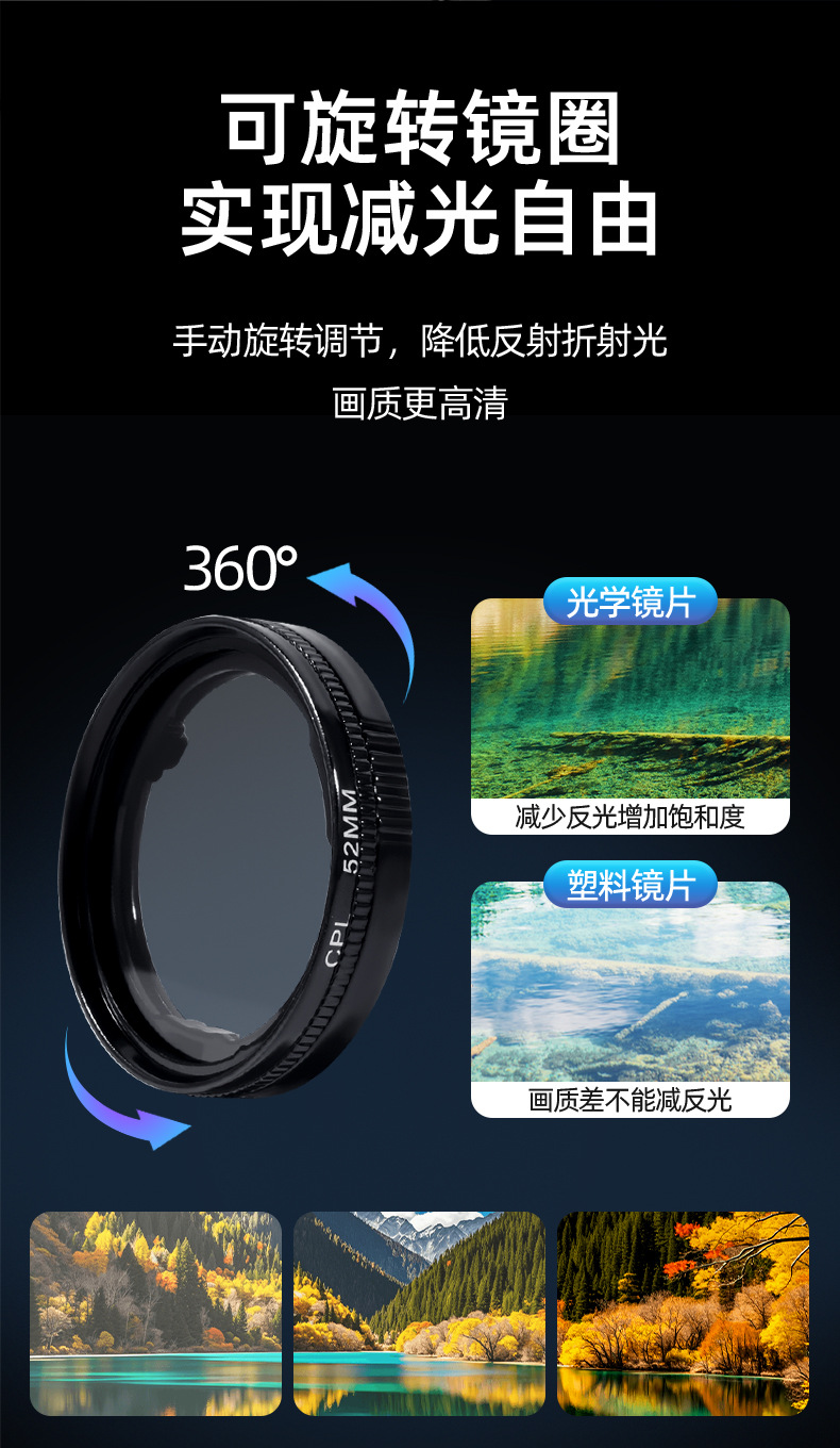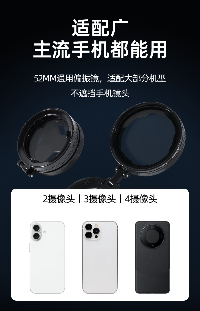 手机偏振镜收纳磁吸折叠偏CPL消除反光偏光镜光学镀膜高清摄影