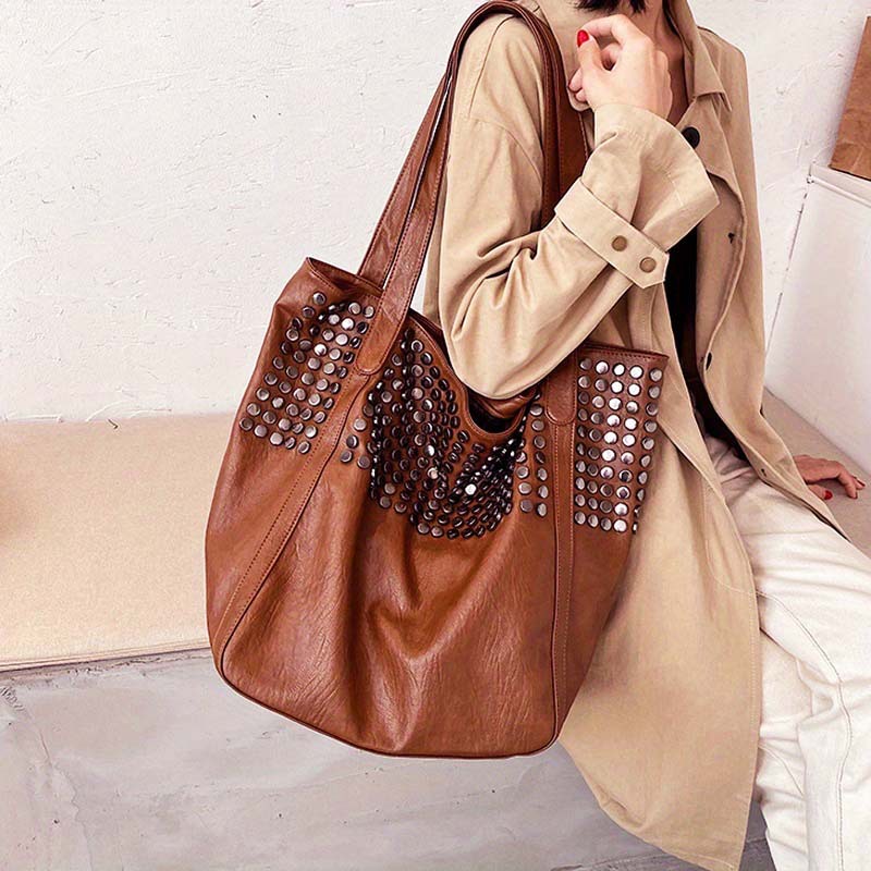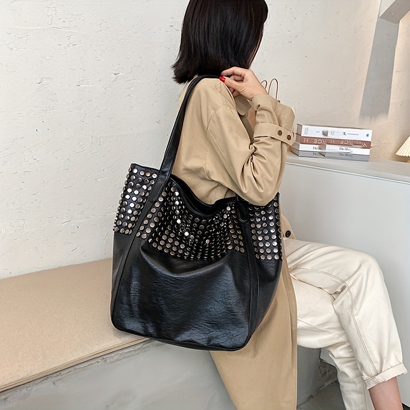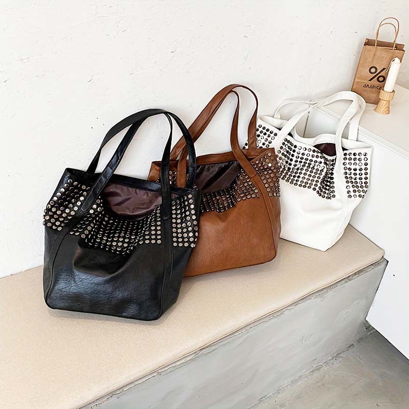 时尚铆钉托特包新款大容量购物袋女包女士手提单肩腋下大包包