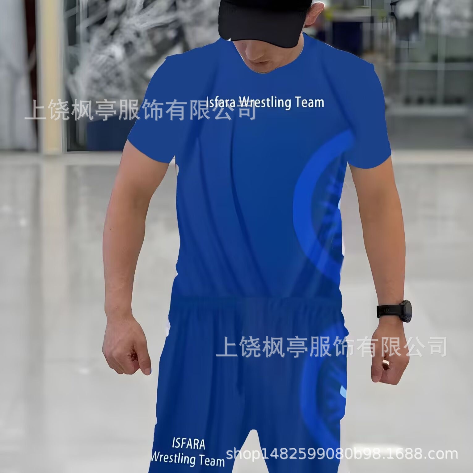【优质涤纶面料】夏季运动数码印花速干拳击格斗健身男士T恤套装