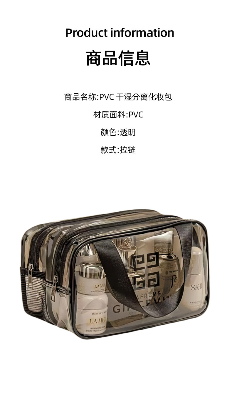 热卖款干湿分离化妆包PVC防污大容量透明手提健身收纳包便携ins,批发价,价格:12,厂家直销,热卖款干湿分离化妆包PVC防污大容量透明手提健身收纳包便携ins,免费拿样。