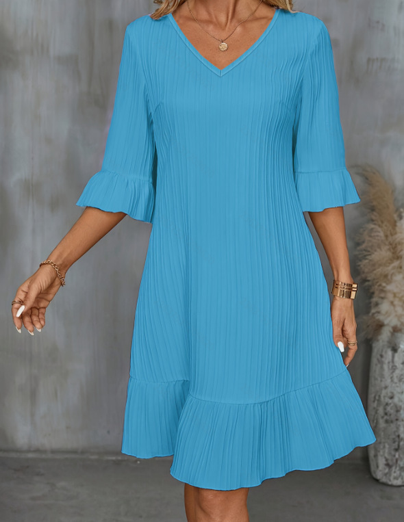 2025夏季新款亚马逊跨境欧美纯色V领喇叭袖中长裙连衣裙女装,批发价,价格:32,厂家直销,2025夏季新款亚马逊跨境欧美纯色V领喇叭袖中长裙连衣裙女装,免费拿样。