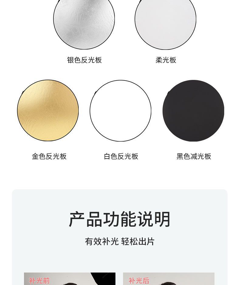 摄影五合一反光板可折叠便携人像补光挡光柔光直播户外影楼