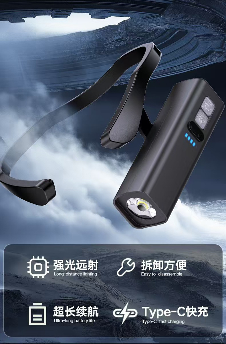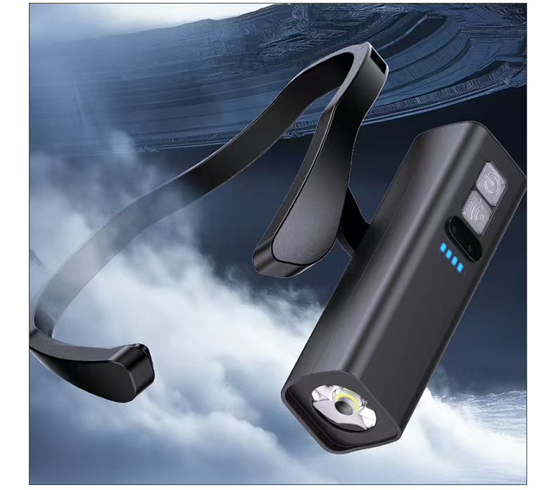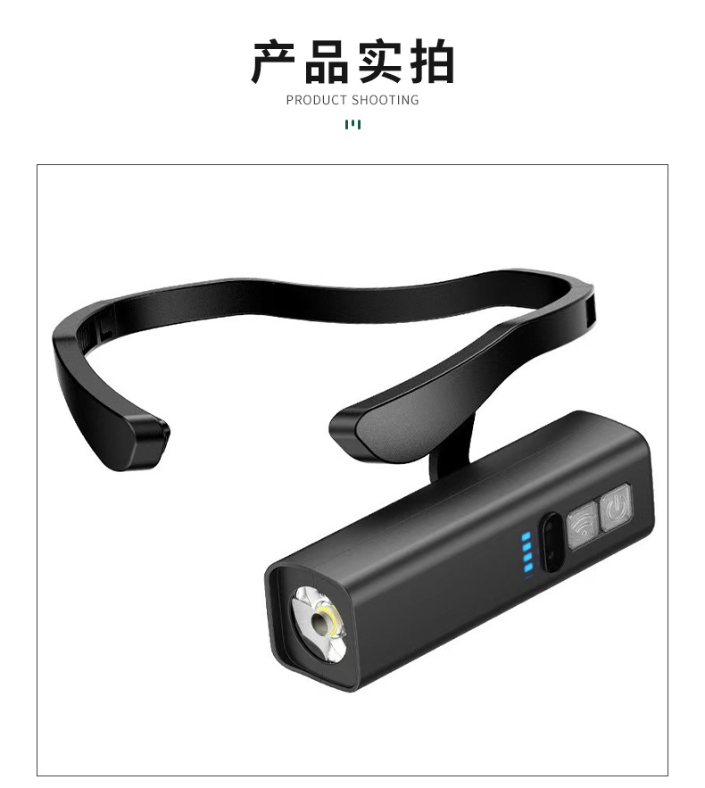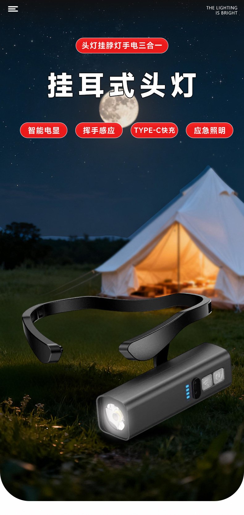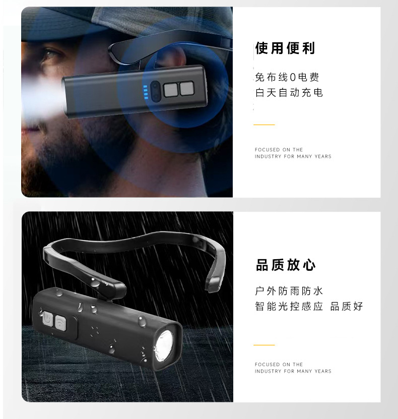 户外头戴式头灯挥手感应挂耳式手电筒登山夜钓跑步灯太阳能灯
