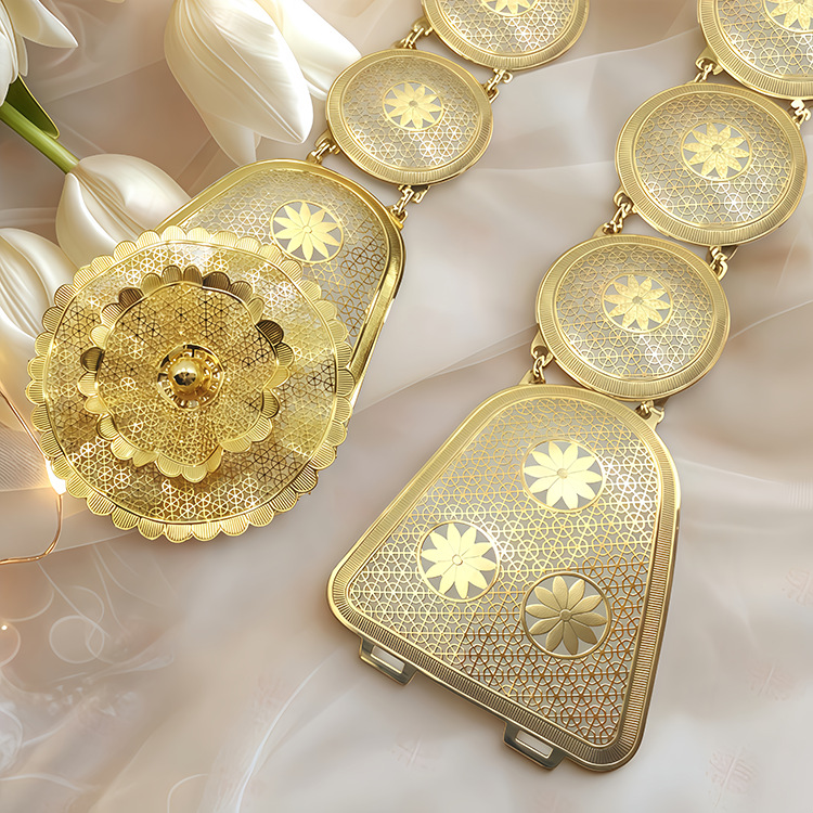 跨境民族风金属腰带雕花钱币流苏身体链阿拉伯女士婚庆服饰腰带