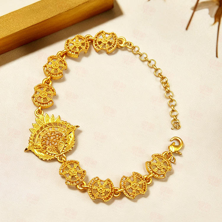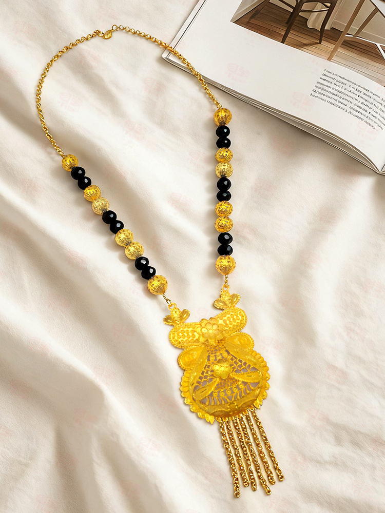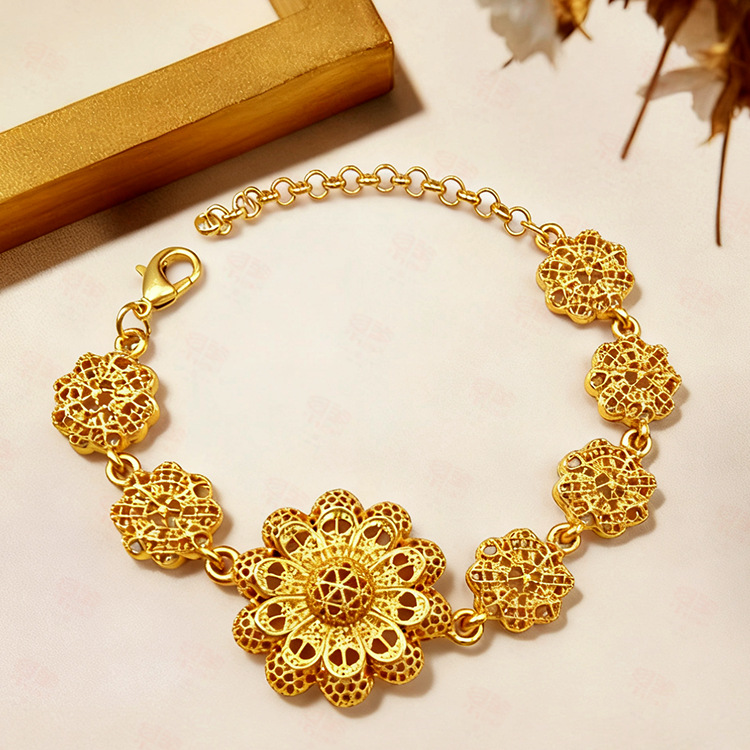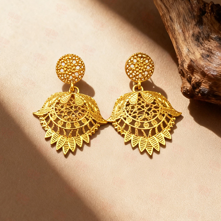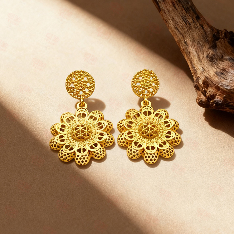24K镀金立体太阳花流苏吊坠项链饰品套装东南亚简约新娘婚礼首饰