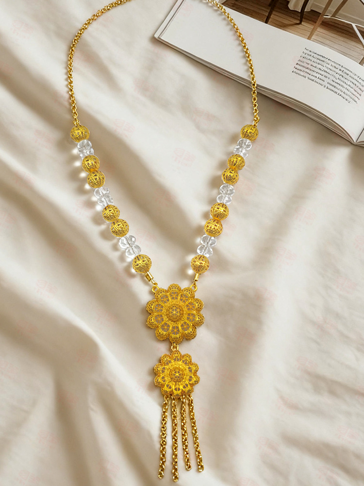 24K镀金立体太阳花流苏吊坠项链饰品套装东南亚简约新娘婚礼首饰,批发价,价格:44.5,厂家直销,24K镀金立体太阳花流苏吊坠项链饰品套装东南亚简约新娘婚礼首饰,免费拿样。